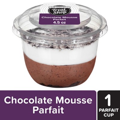 CHOCOLATE MOUSSE WITH CHOCOLATE CRUMB & WHIPPED TOPPING.
