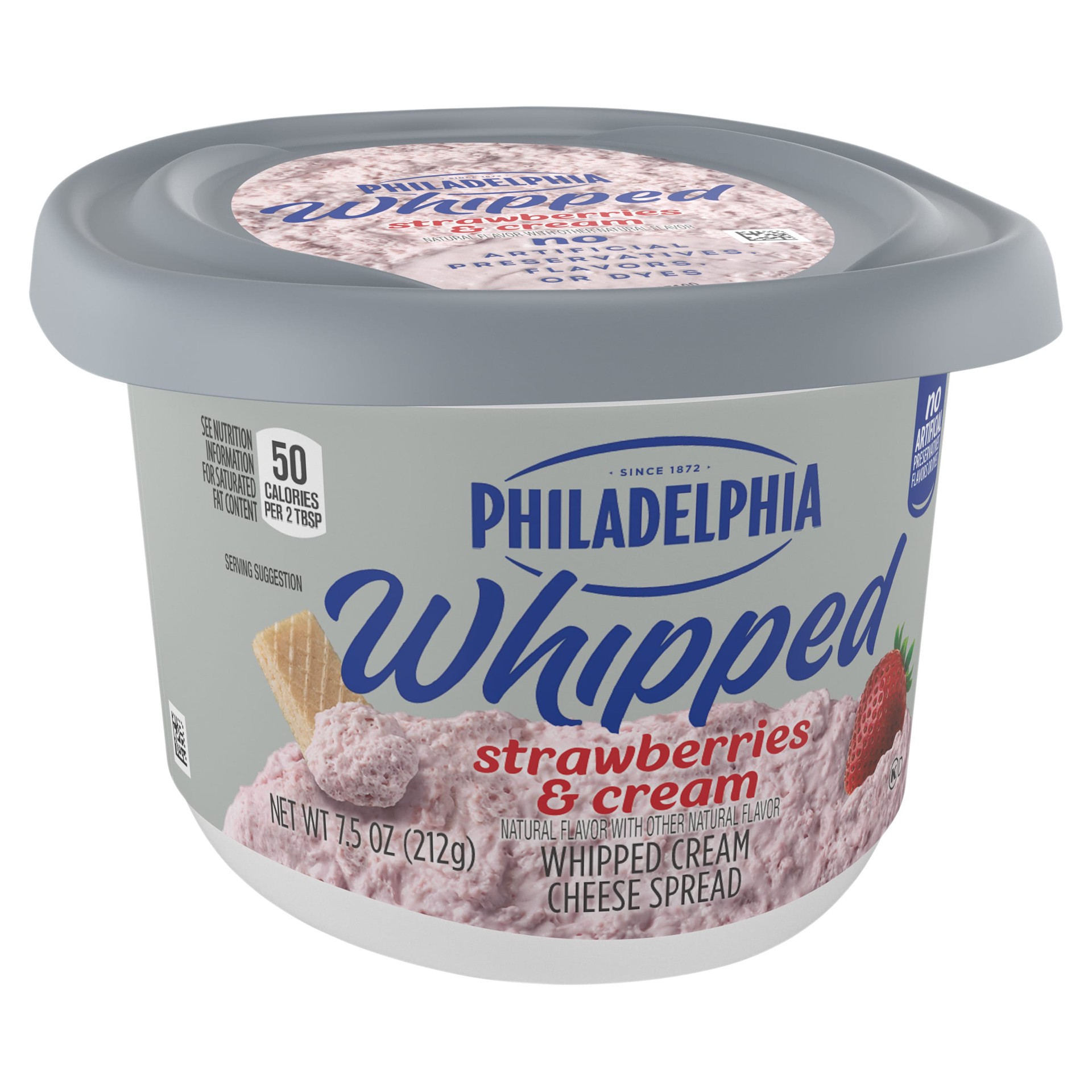 - WHIPPED CREAM CHEESE SPREAD TUB: One 7.5 oz tub of Philadelphia Strawberries & Cream Natural Flavor with Other Natural Flavors Whipped Cream Cheese Spread