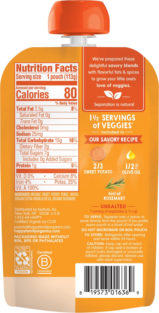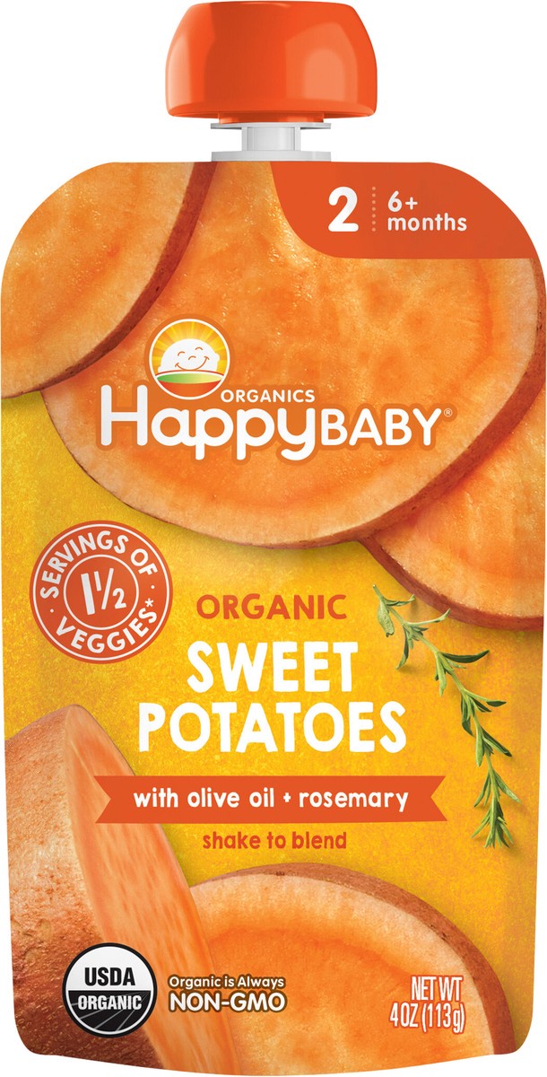 Happy Baby Organics Stage 2 Organic Sweet Potatoes with Olive Oil + Rosemary 4oz Pouch