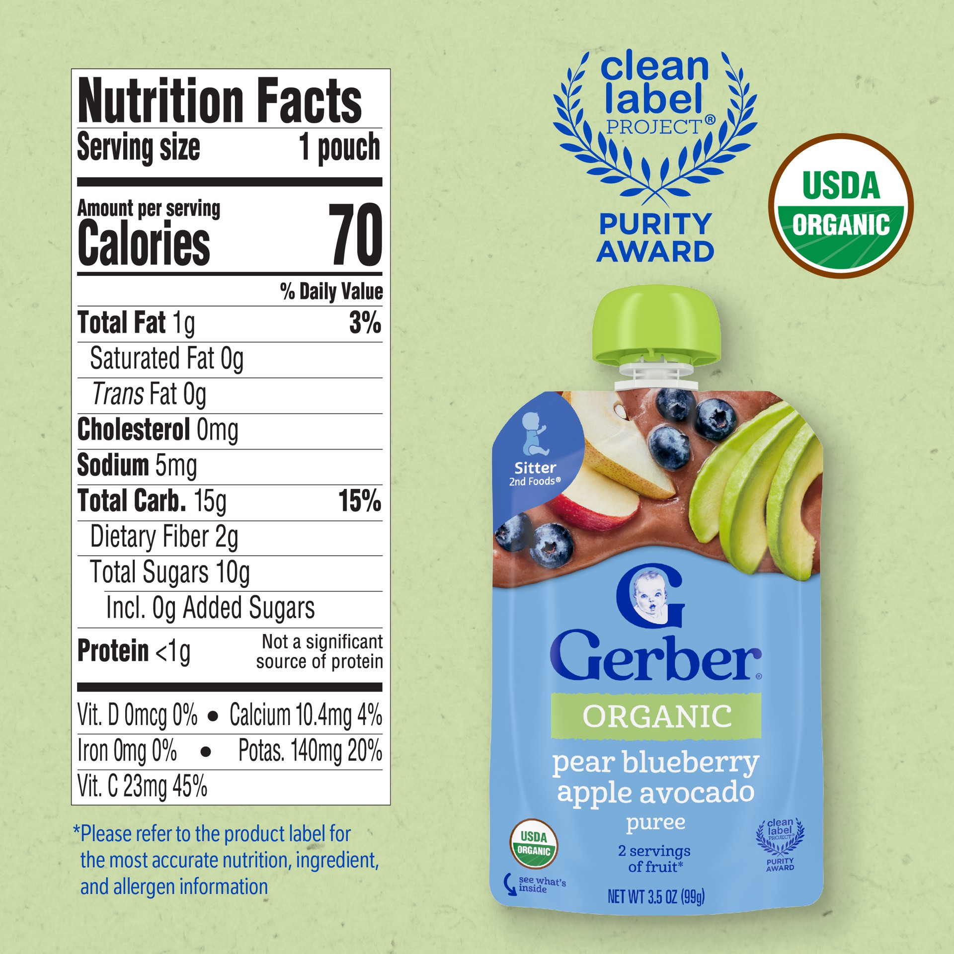 Gerber 2nd Foods Organic Pear Blueberry Apple Avocado Baby Food Pouch - 3.5 Oz