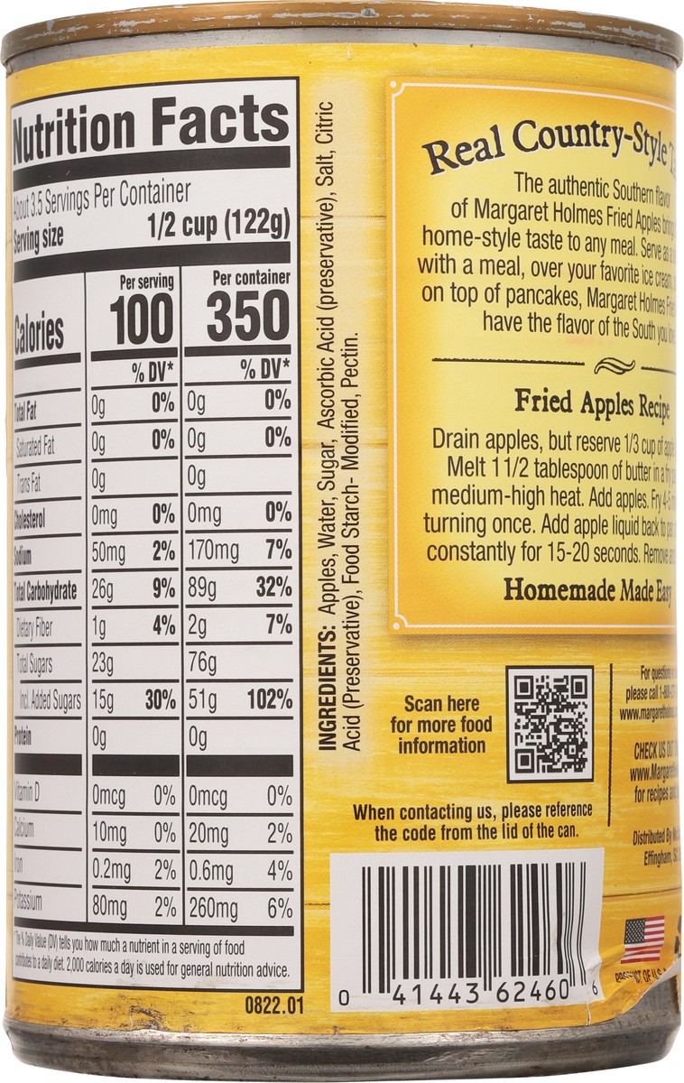 Homemade made easy. Recipe on back! Real southern style. Real Country-Style taste! The authentic Southern flavor of Margaret Holmes Fried Apples brings that home-style taste to any meal. Family owned.
