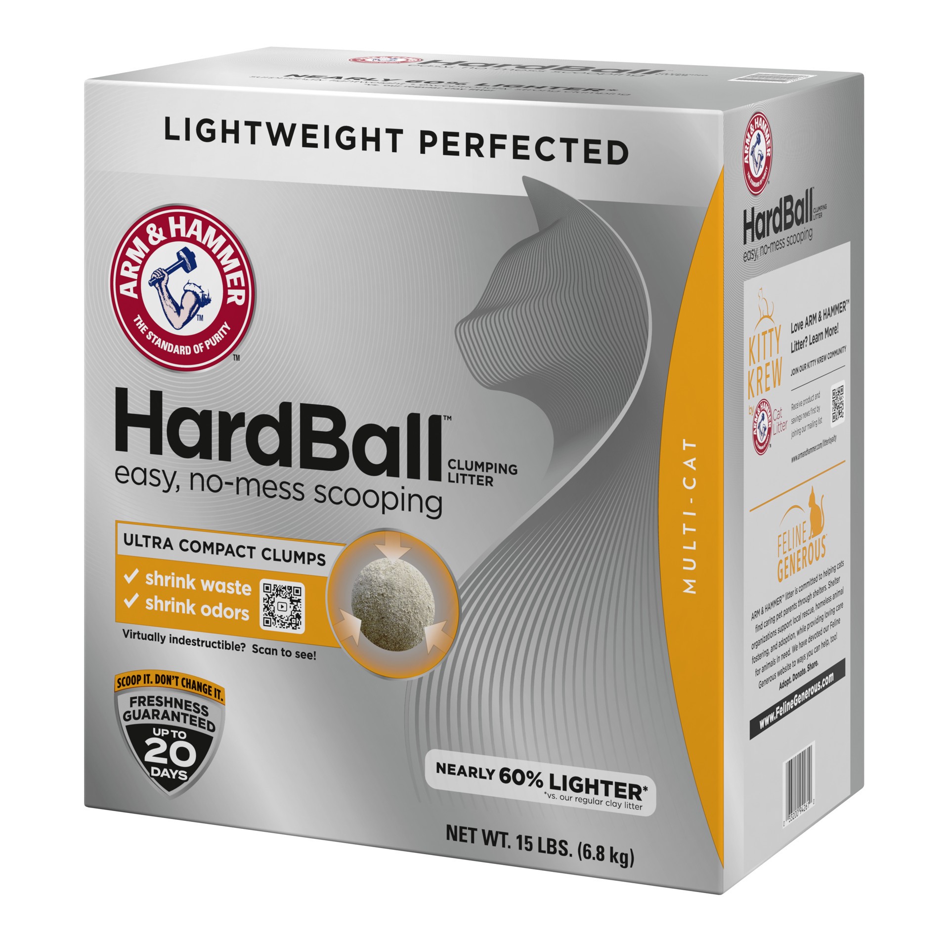 - ARM & HAMMER HARDBALL CAT LITTER: 15 lb box of lightweight kitty litter