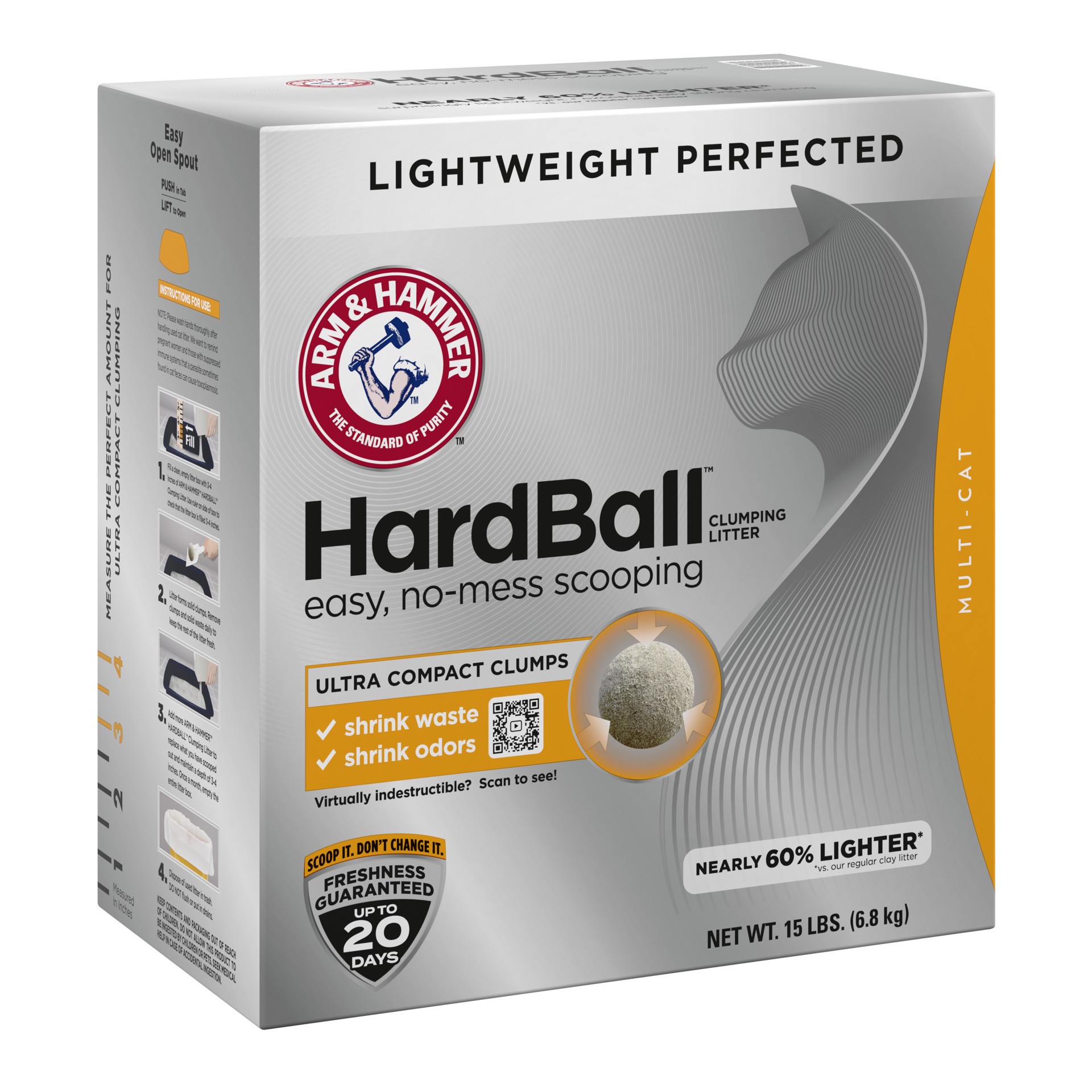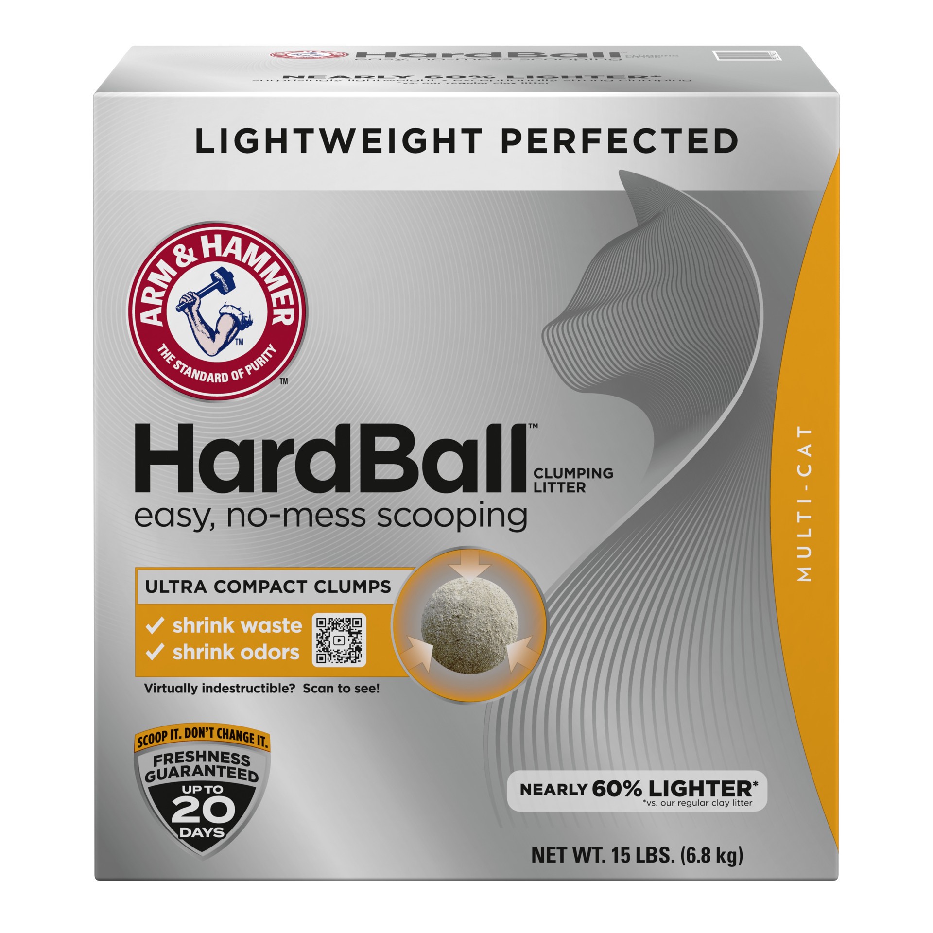 ARM & HAMMER Hardball Lightweight Cat Litter, Clumping, No-Mess Scooping, Multi-Cat, 15 lb