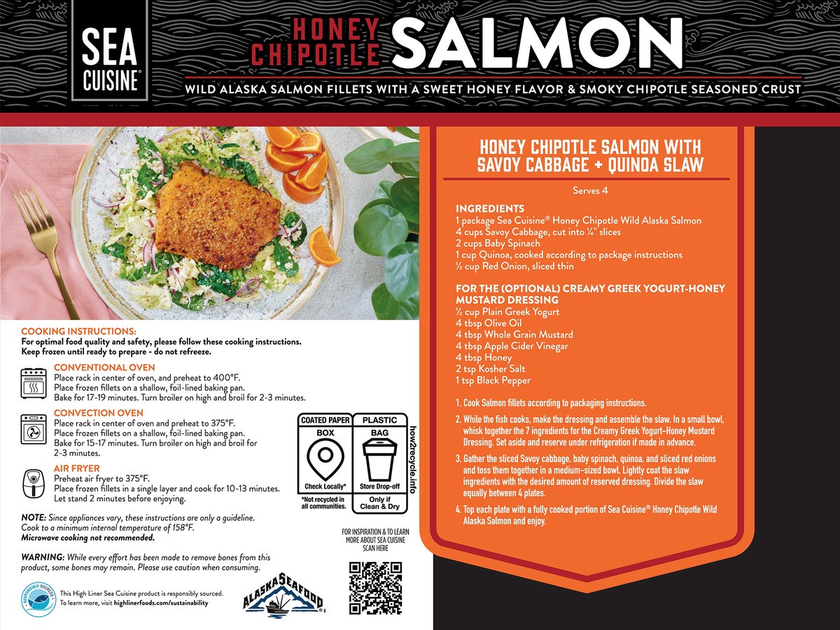 Sea Cuisine's chefs did the work so you can make delicious seafood easily at home. Each pack includes four Wild Alaska Salmon fillets with a sweet honey flavor & smoky chipotle seasoned crust. Crafted…