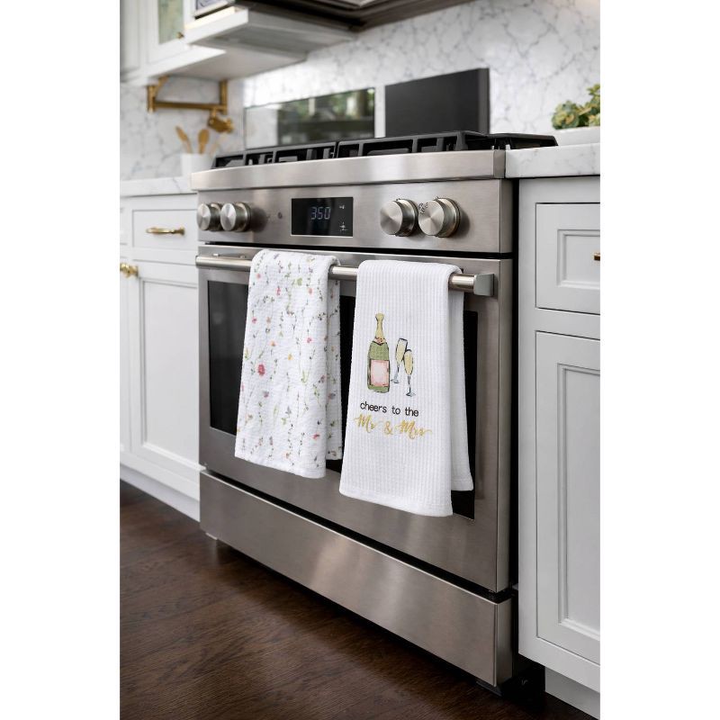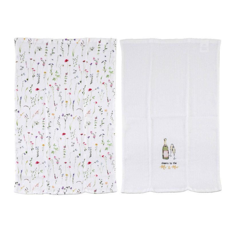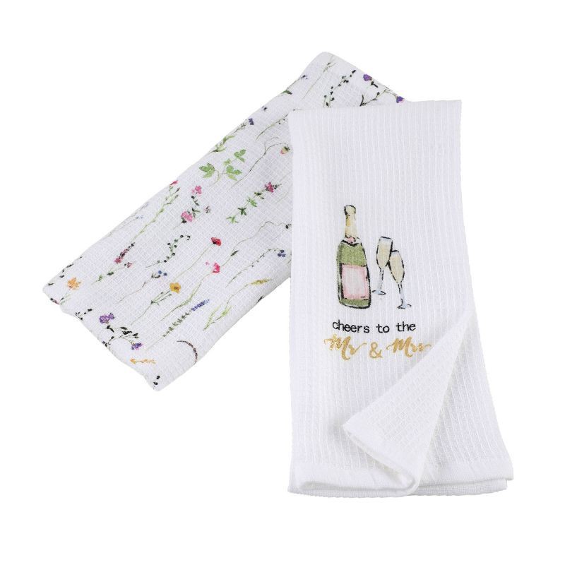 Celebrate love in style with this charming wedding-themed towel set, featuring a delicate illustration of a champagne bottle and two flutes paired with the elegant phrase “Cheers to the Mr & Mrs.” Thi…