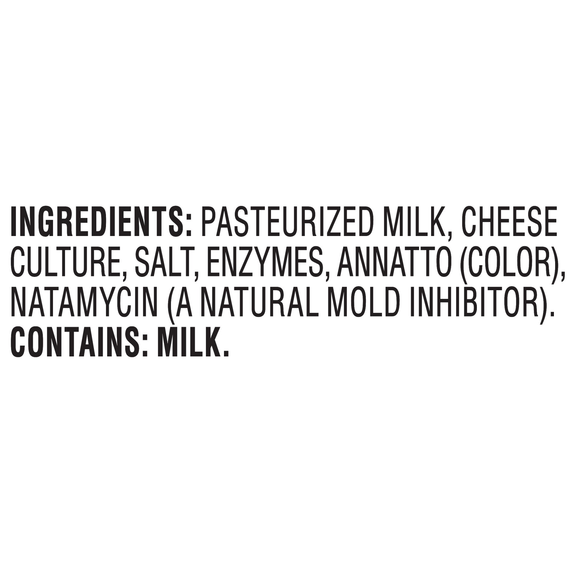 Pasteurized Milk, Cheese Culture, Salt, Enzymes, Annatto (color), Natamycin (a Natural Mold Inhibitor)