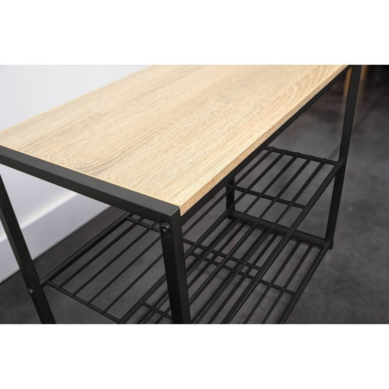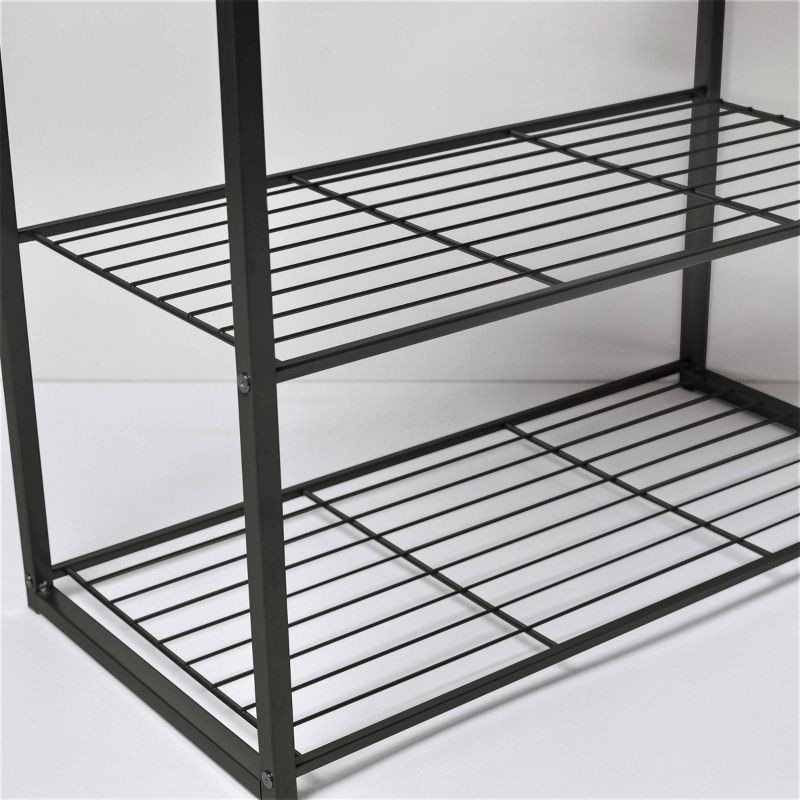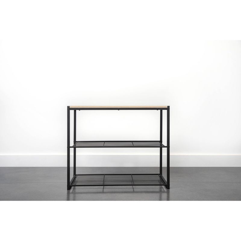 - Black metal shoe rack with natural wood top makes a sleek addition to your home