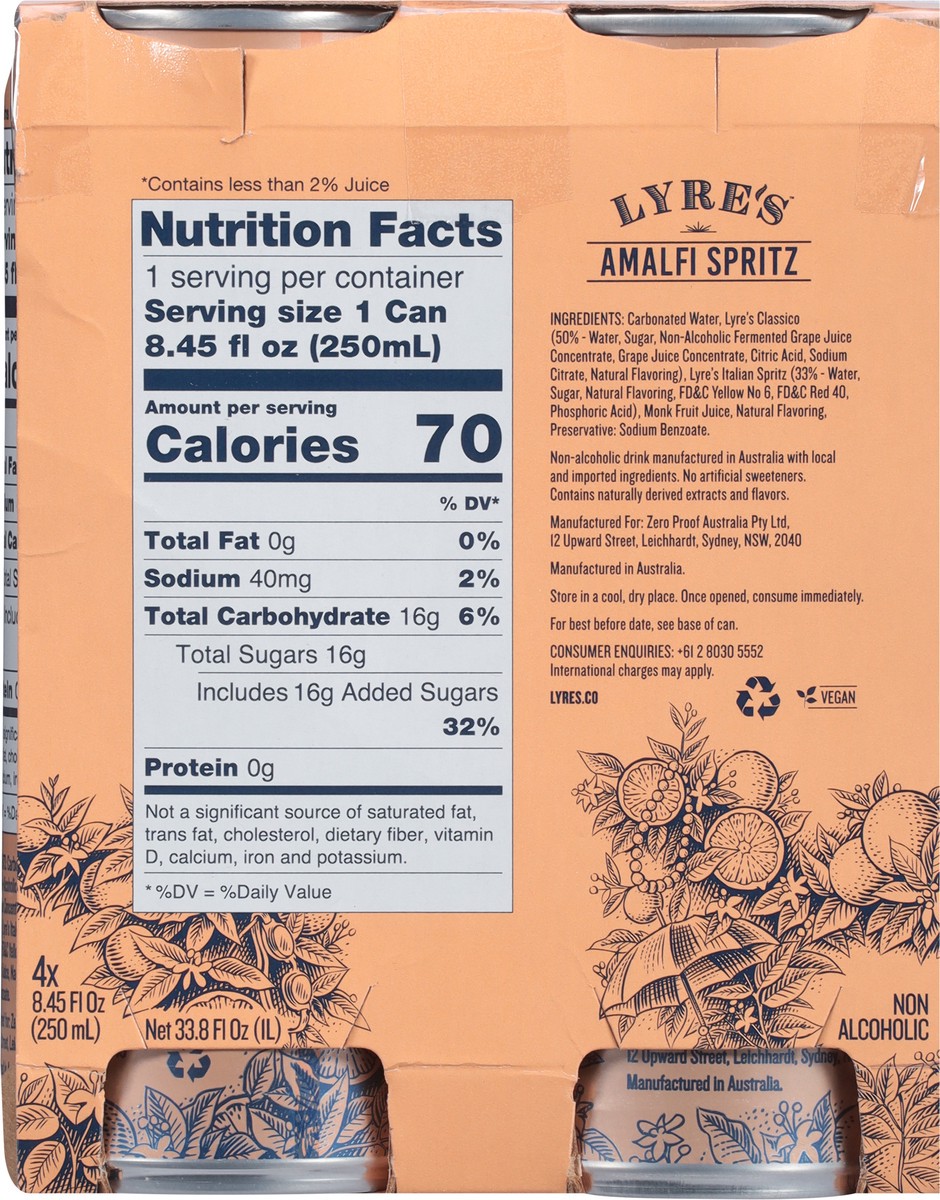 Carbonated Water, Lyre's Classico (50% - Water, Sugar, Non-Alcoholic Fermented Grape Juice Concentrate, Grape Juice Concentrate, Citric Acid, Sodium Citrate, Natural Flavoring), Lyre's Italian Spritz …