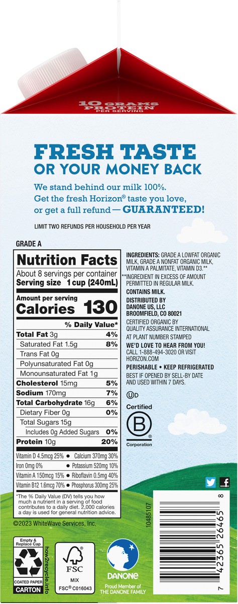 Treat your family to the cold, creamy goodness of Horizon Organic 1% lowfat Milk with High Vitamin D. Rich, delicious taste isn''t the only thing that makes this 1% milk special: it''s also wonderfull…