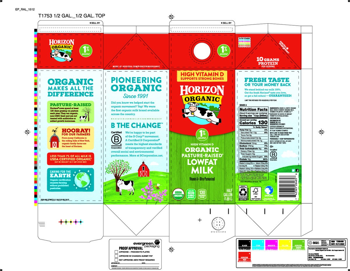 Horizon Organic 1% Lowfat High Vitamin D Milk Carton - 0.5 Gallon