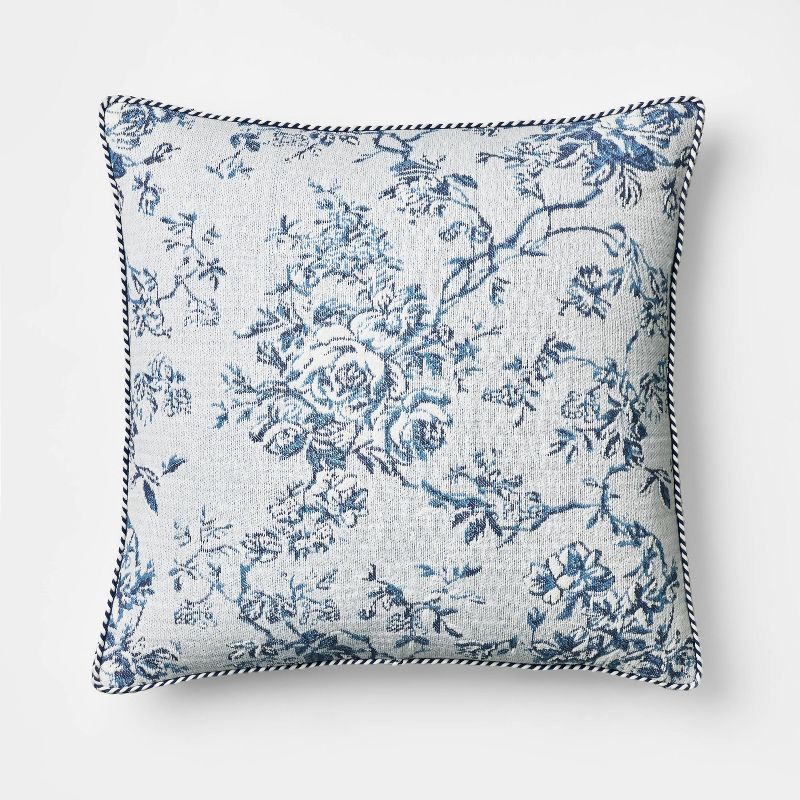 Threshold designed w/Studio McGee Oversized Square Floral Jacquard Pillow Blue - Threshold™ designed with Studio McGee