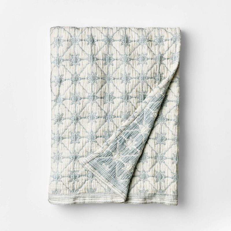 Elevate your decor with the timeless appeal of this Cotton Textured Throw Blanket from Threshold™ designed with Studio McGee. The throw blanket is adorned with a star pattern on a textured backdrop fo…