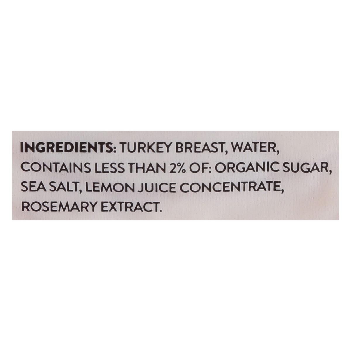 Turkey Breast, Water, Contains Less Than 2% of: Organic Sugar, Sea Salt, Lemon Juice Concentrate, Rosemary Extract.