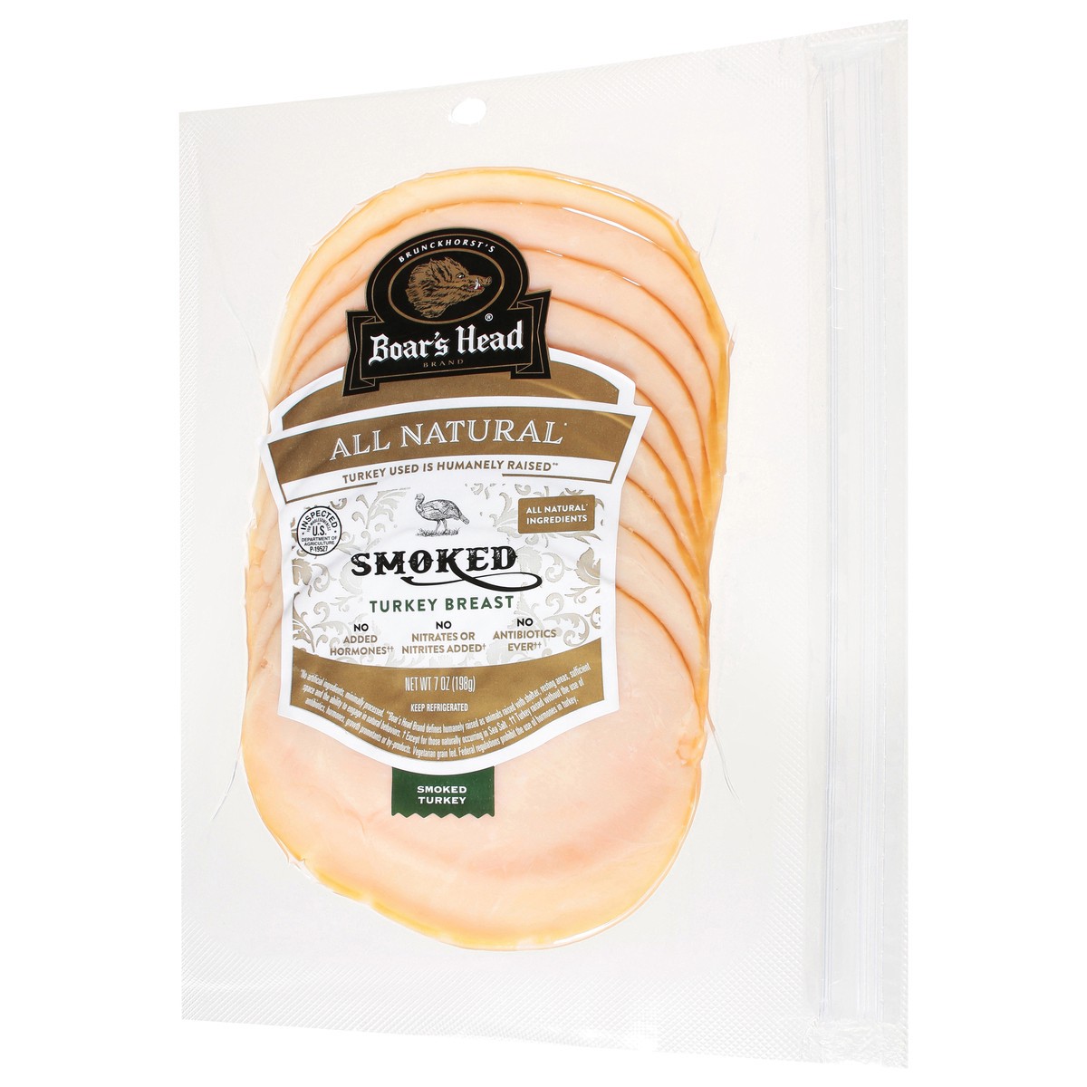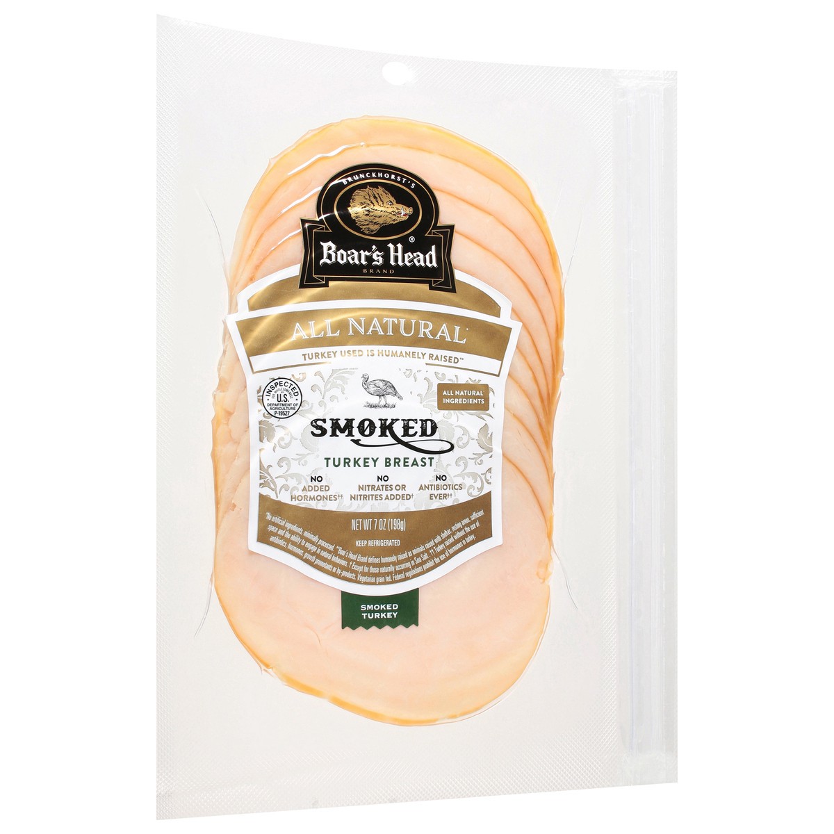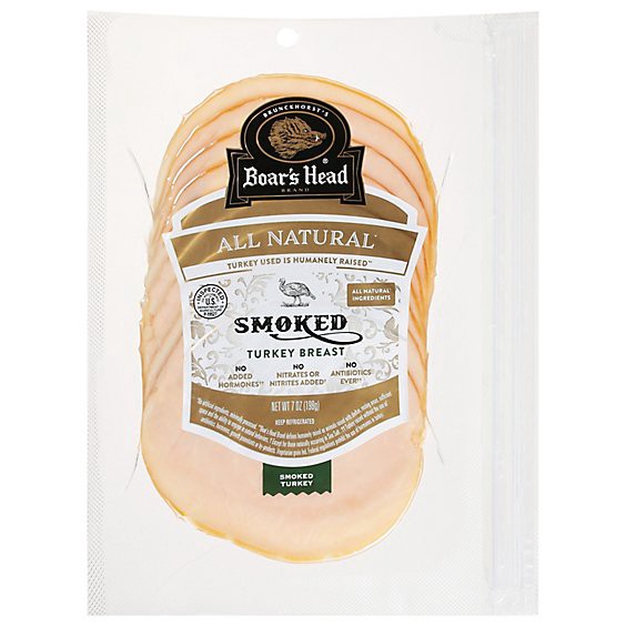 Crafted with simple ingredients, we start with humanely raised turkeys that have no added hormones and no antibiotics ever. Boar's Head All Natural Smoked Turkey Breast is oven roasted and then lightl…