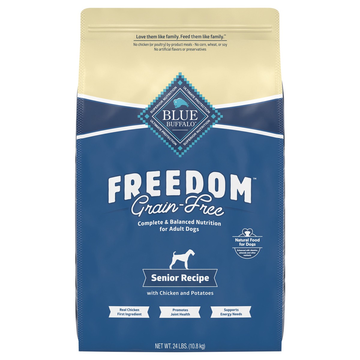 Blue Buffalo Freedom Grain-Free Senior Dry Dog Food, Provides Energy To Stay Active, Made in the USA with Natural Ingredients, Chicken & Potatoes, 24-lb Bag