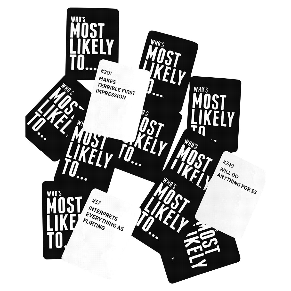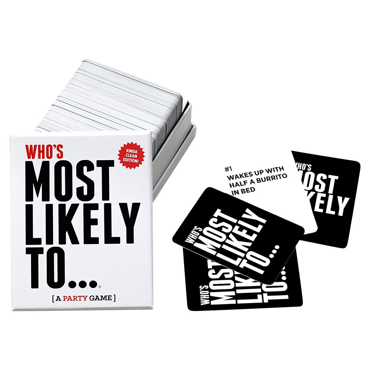 Whos Most Likely To... Kinda Clean Family Edition includes 250 prompt cards to decide who in the group is MOST LIKELY TO...44 Find everything on Craigslist, 68 Laugh at jokes they dont get, or 118 Nev…