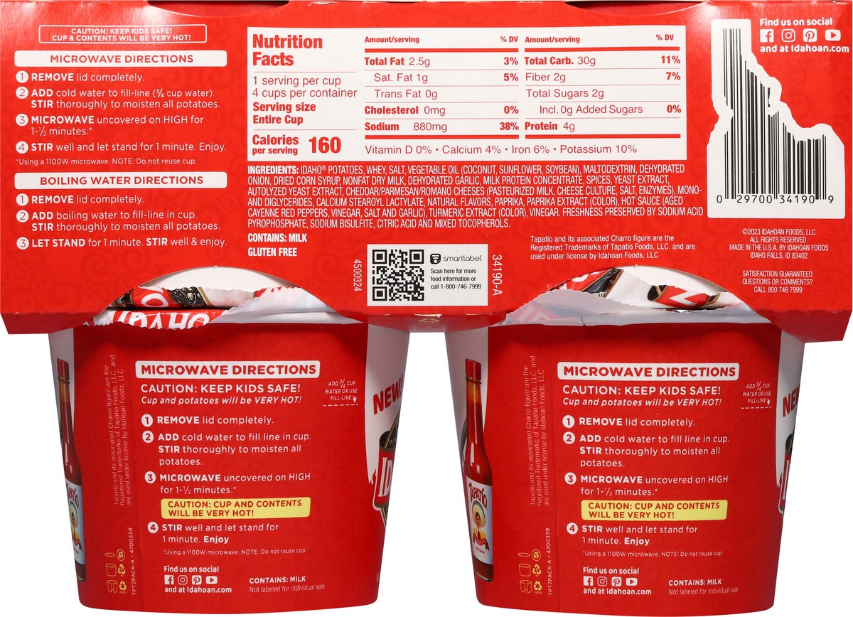 Idahoan Tapatio Triple Cheese Hot Sauce Flavored Mashed Potatoes 4 - 1.5 oz Cups