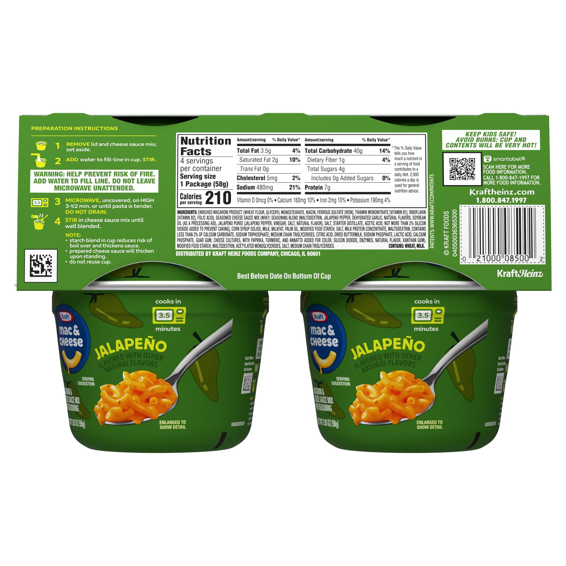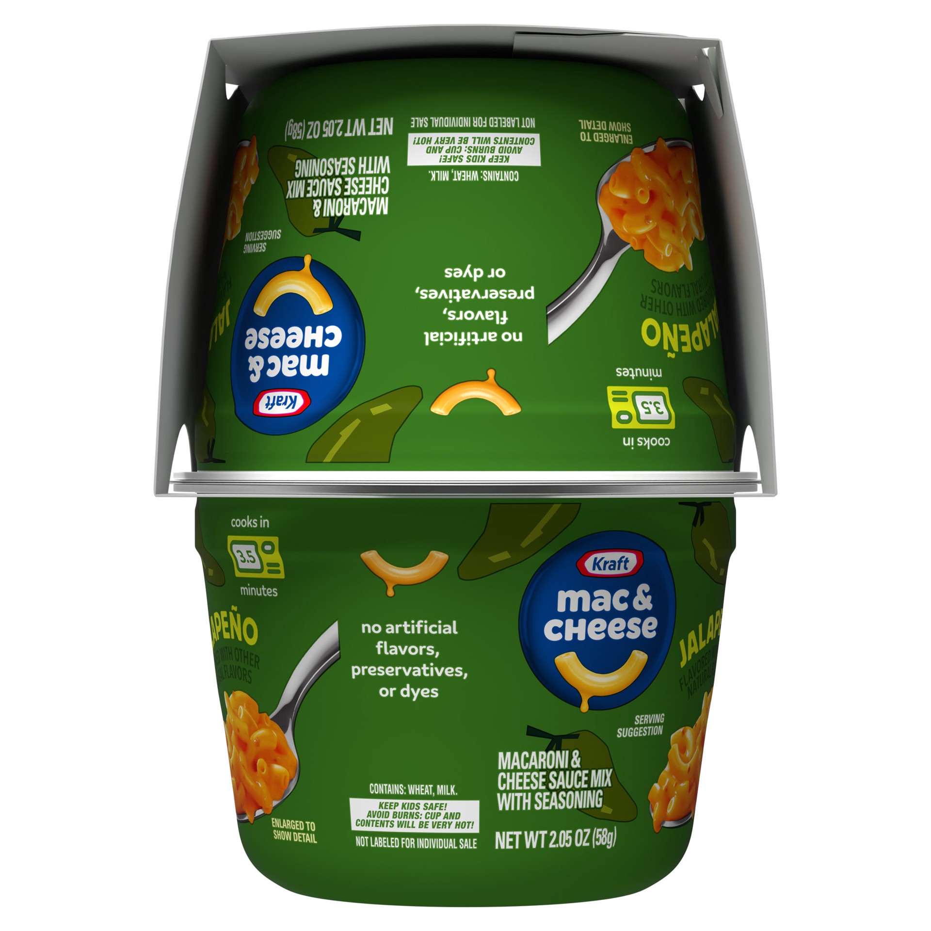 Kraft Mac and Cheese, 4 Cups, for Easy Dinner or Dinner Sides, Jalapeño Flavored with Other Natural Flavors, No Artificial Flavors, Preservatives or Dyes, 2.05 oz