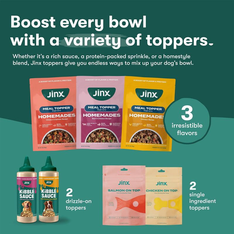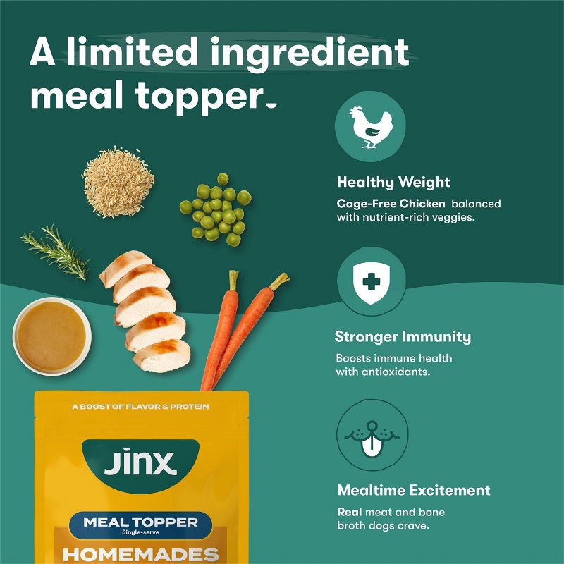 Homemades Single-Serve Meal Topper Chicken RecipeMake every meal a healthy delight with Jinx Homemades Single-Serve Meal Chicken Recipe. High quality chicken is the #1 ingredient in this convenient si…