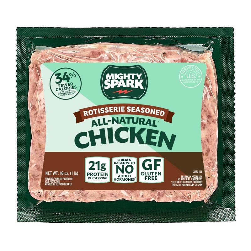 Mighty Spark Rotisserie-Seasoned ground chicken is crafted using the finest cuts of lean, all-natural chicken. Using just the right amount of seasoning and garlic, Mighty Spark's Rotisserie-Seasoned c…