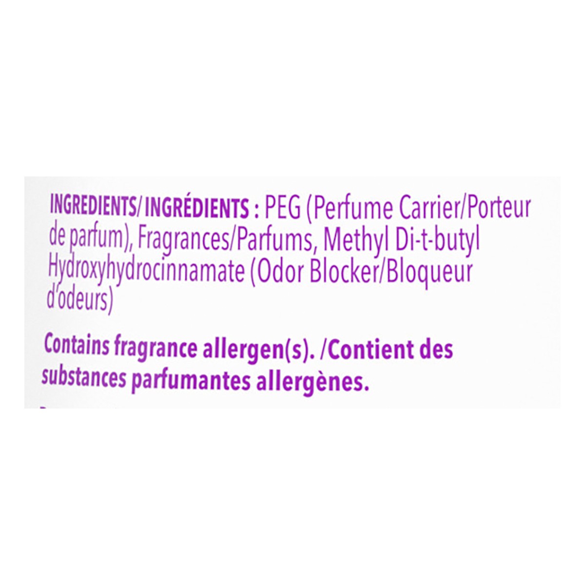 PEG (Perfume Carrier/Porteur De Parfum), Fragrances/Parfums, Methyl Di-T-Butyl Hydroxyhydrocinnamate (Odor Blocker/Bloqueur D''odeurs).