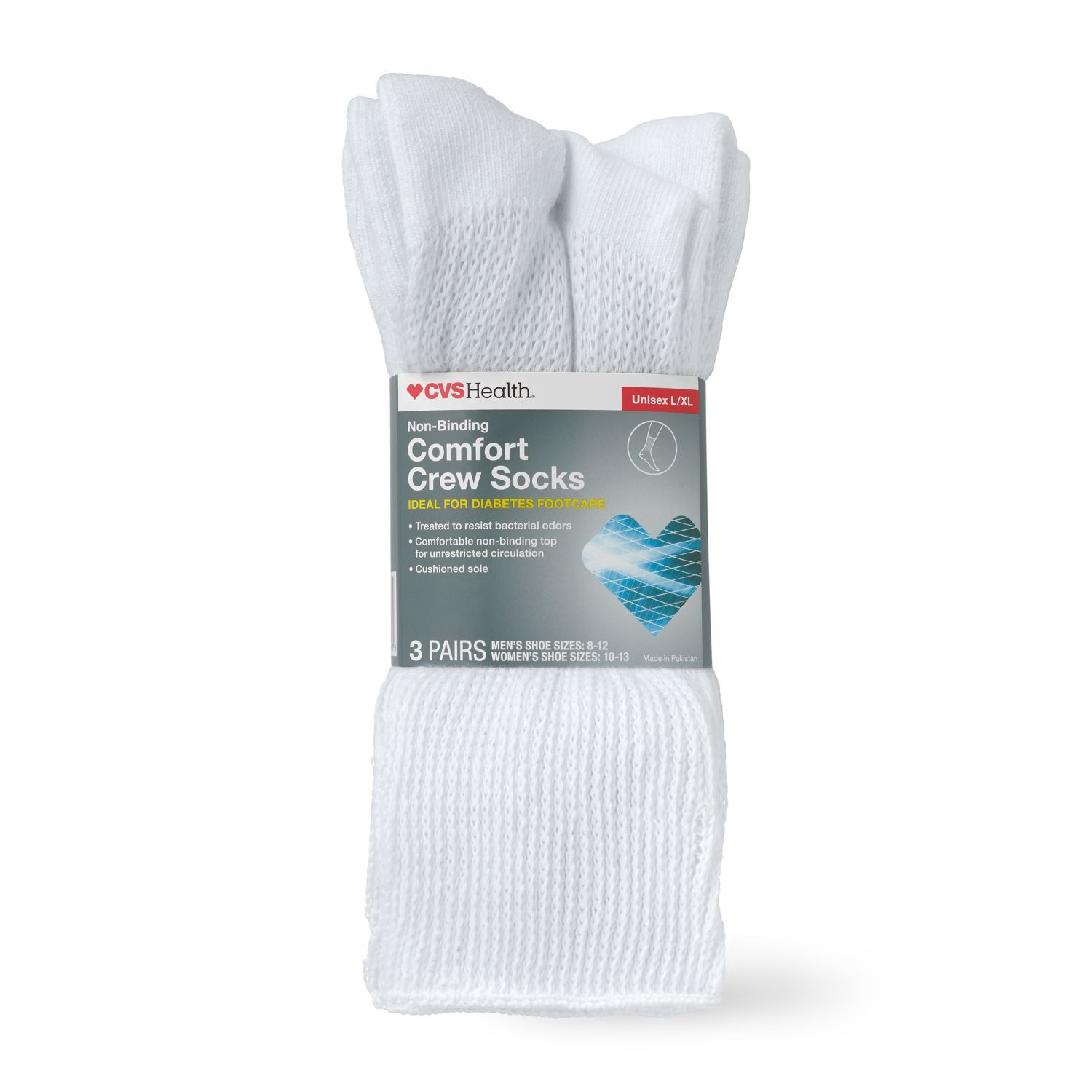 The CVS Health Ideal for Diabetic Comfort Socks are designed with anyone with special foot care needs in mind. The non-binding top ensure the Socks is comfortable and doesnt cut off circulation. A smo…