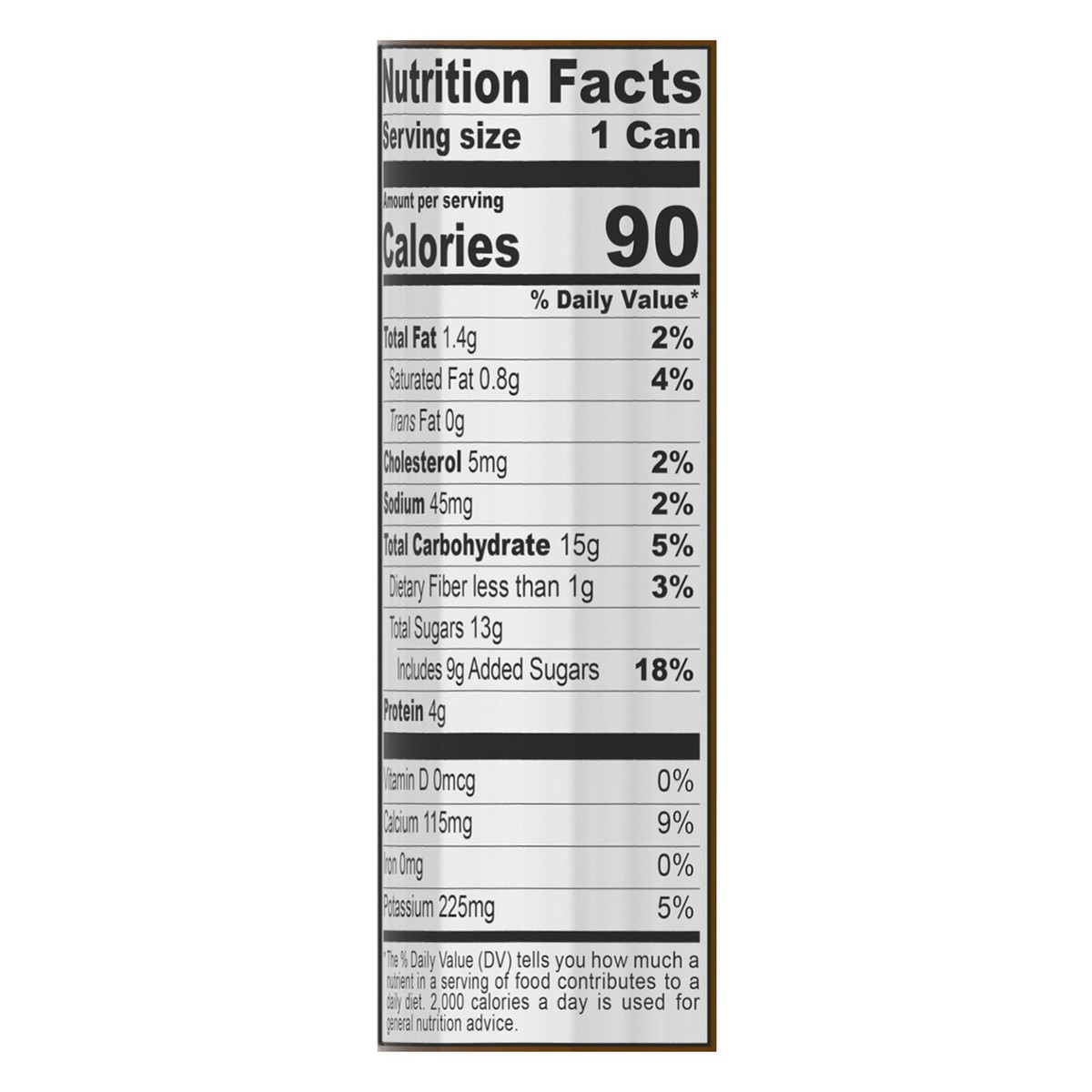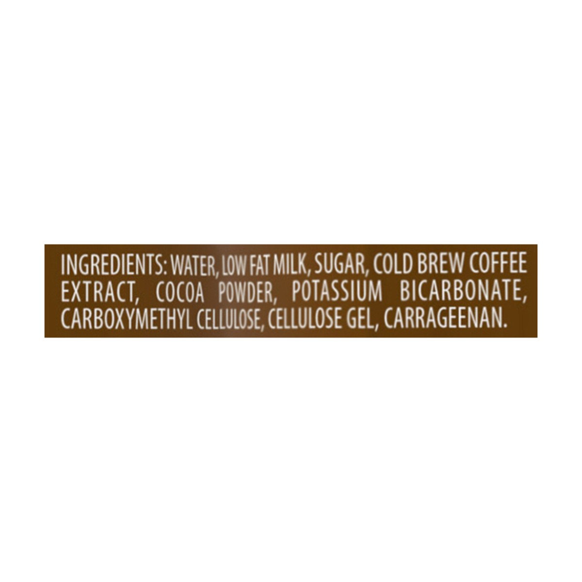 Water, Low Fat Milk, Sugar, Cold Brew Coffee Extract, Cocoa Powder, Potassium Bicarbonate, Carboxymethyl Cellulose, Cellulose Gel, Carrageenan.