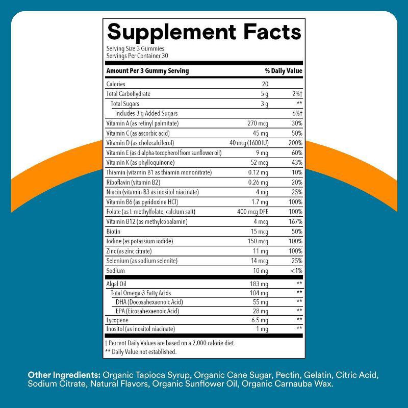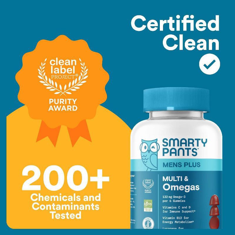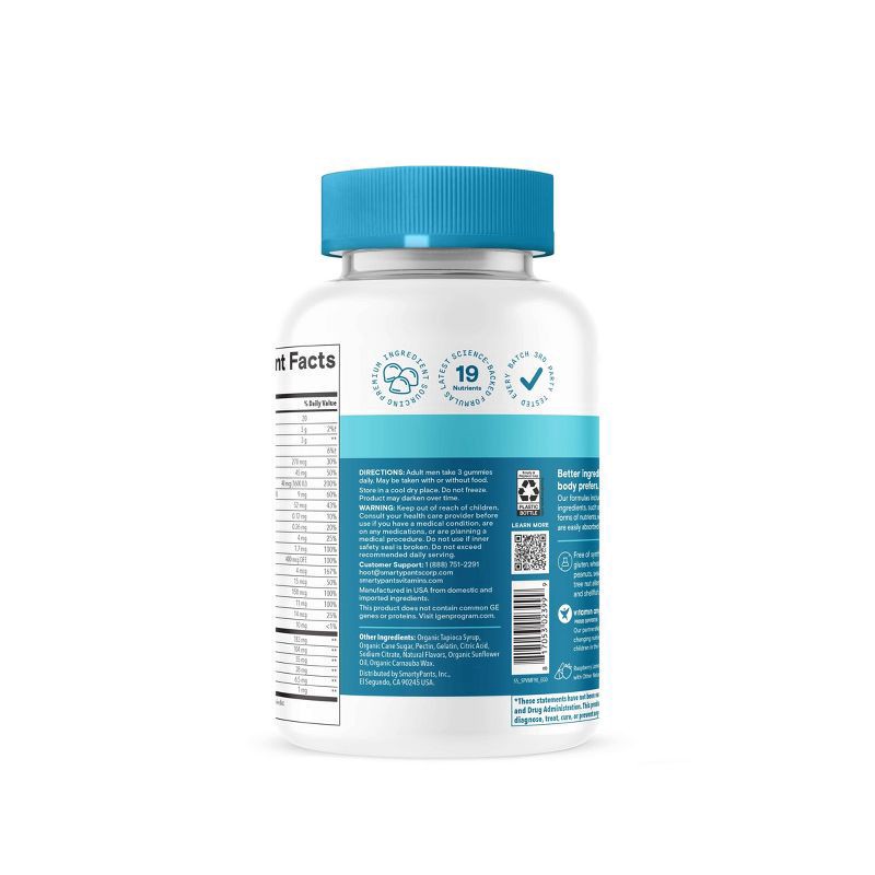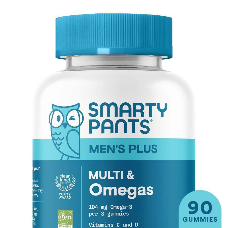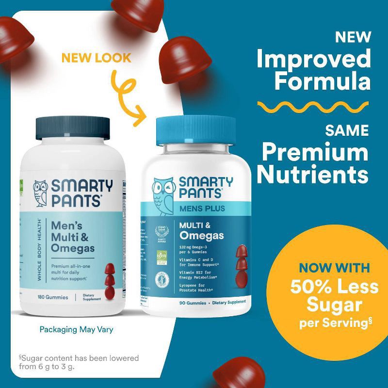 SmartyPants Men's Multi & Omegas are made with 19 nutrients to support overall health* including vitamins D3, B12, K, biotin, folate, and Omega-3 DHA/EPA from algal oil, in a delicious three-gummy ser…