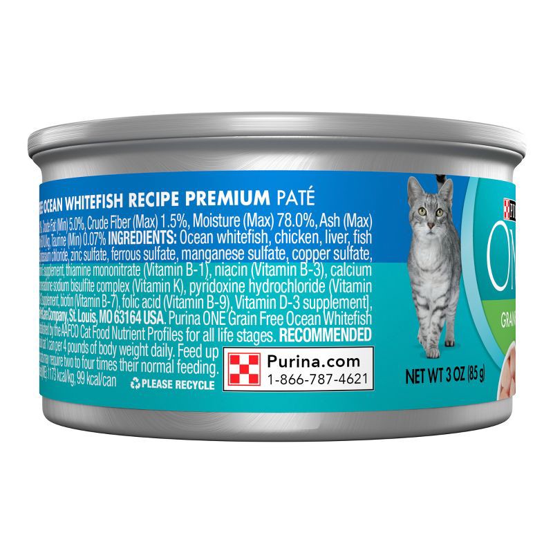 Take your cat's taste buds on an adventure with Purina ONE Natural Grain-Free Pate Ocean Whitefish Recipe wet cat food pate with added vitamins, minerals and nutrients. Ocean Whitefish is the number o…