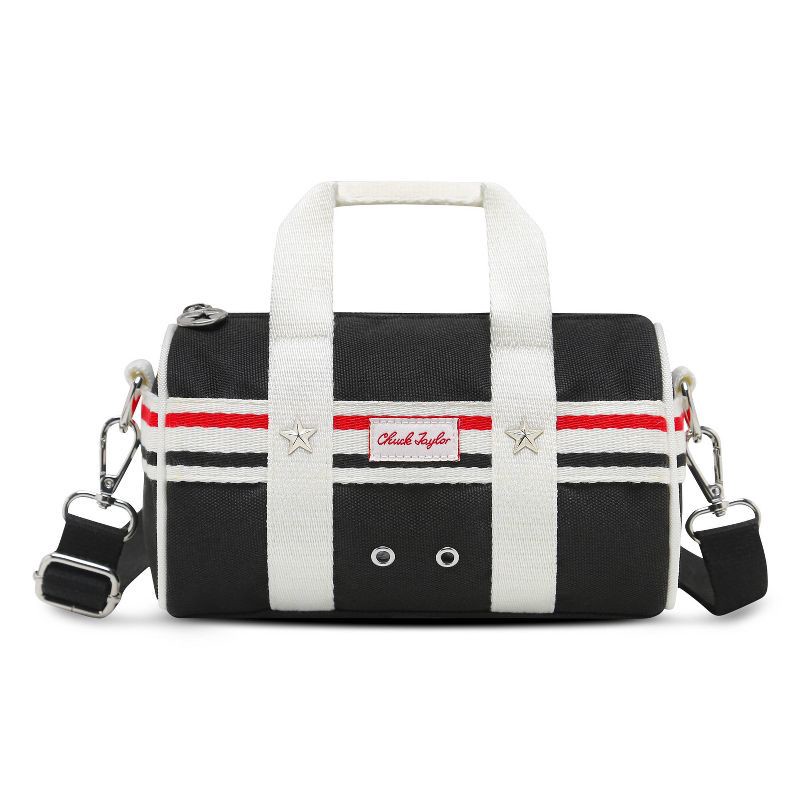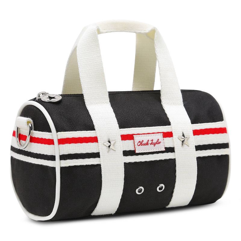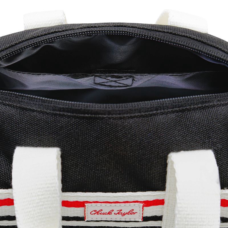 - Iconic Converse branded metallic details, striped webbing and woven Chuck Taylor label give this mini duffel instant street cred.