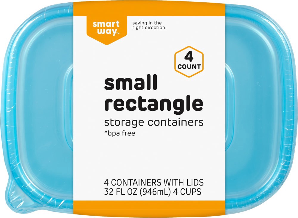 slide 1 of 3, Smart Way Small Rectangle Food Storage Containers, 4 ct; 32 oz