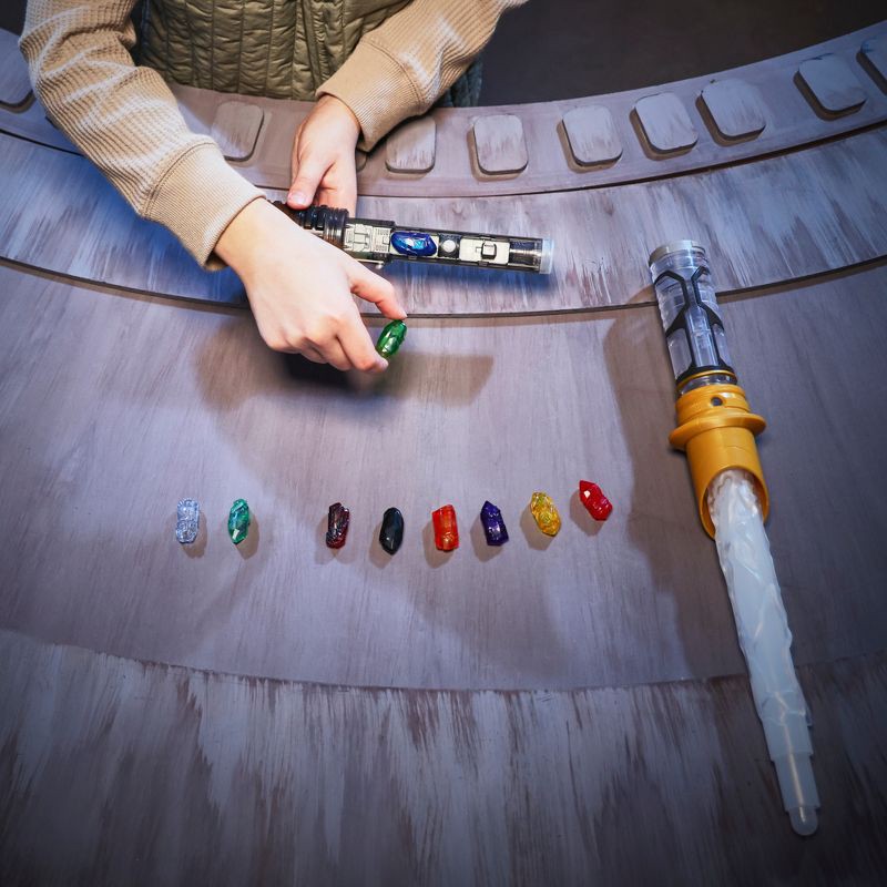 - INCLUDES 10 KYBER CRYSTALS: Inspired by the kyber crystal found at the heart of every Lightsaber, this set includes 10 different crystals for ultimate Lightsaber customization. Watch the crystals glow when inserted into the hilt