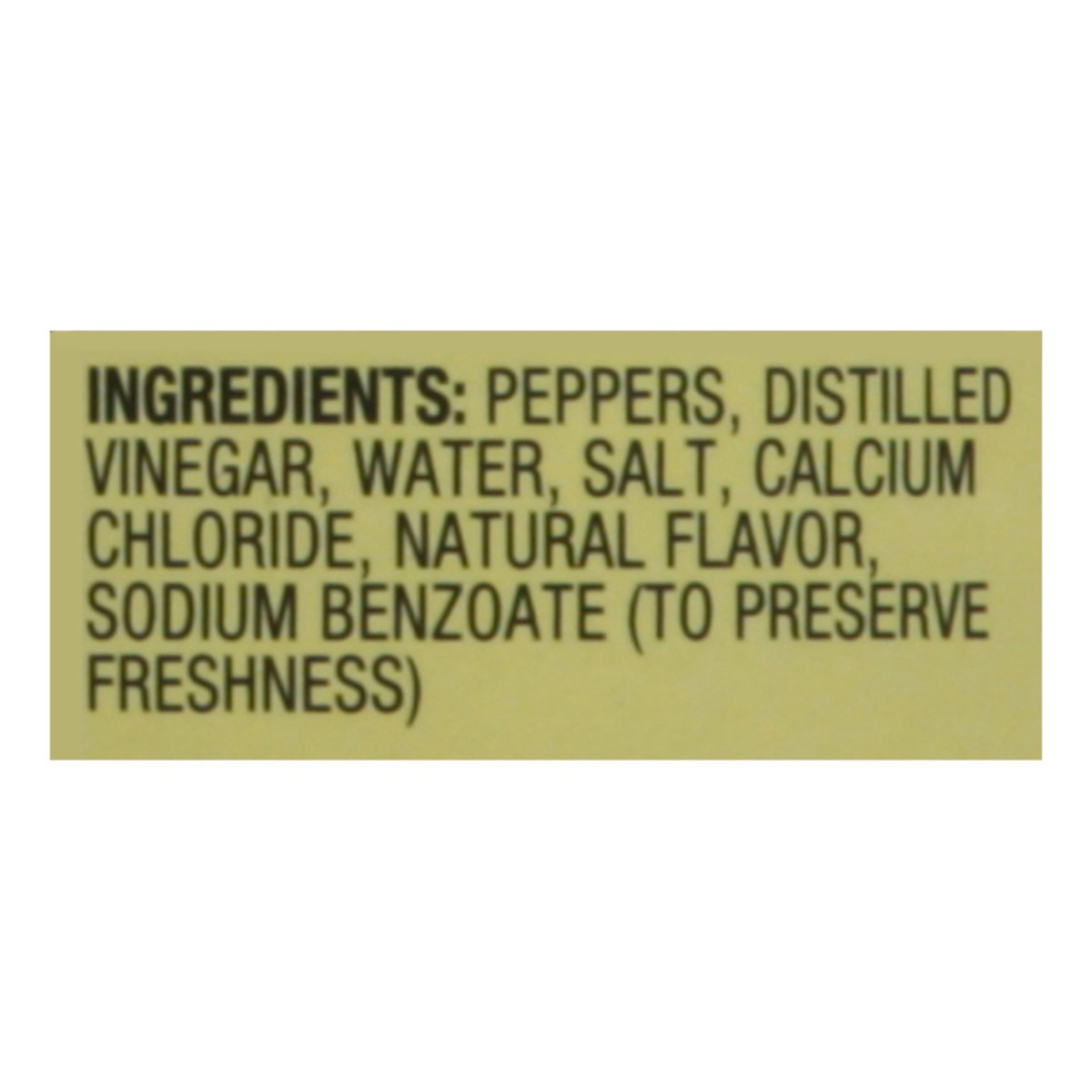 Peppers, Distilled Vinegar, Water, Salt, Calcium Chloride, Natural Flavor, Sodium Benzoate (to Preserve Freshness).