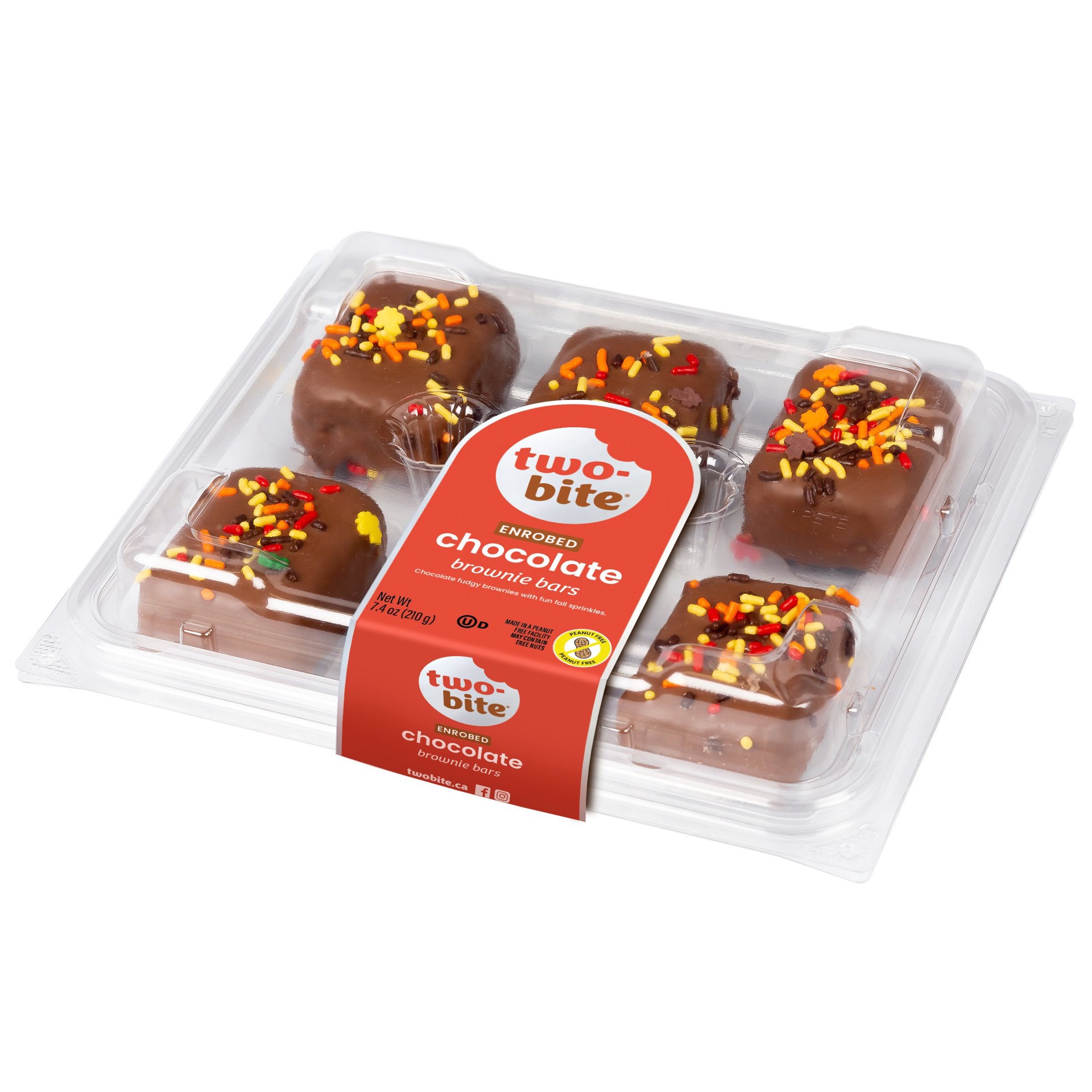 Coated in chocolate, these Two-Bite brownie bars are deliciously moist and fudgy. Topped with fall harvest-themed sprinkles, they're a perfect take-along dessert to parties.• 6 brownie bars• Coated in…