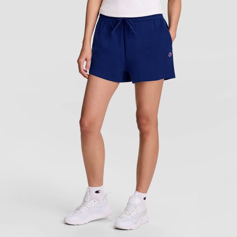 Champion Women's Iconic Cinch Waist Essentials Jersey Shorts - Navy Blue M