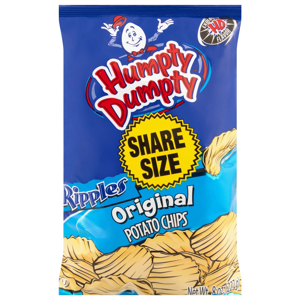 Partially Produced with genetic engineering. Regular. Humpty Dumpty Ripples are the wavy chips cut from the highest quality potatoes for a crunchy potato flavor! Straight out of the bag, or with a dip…
