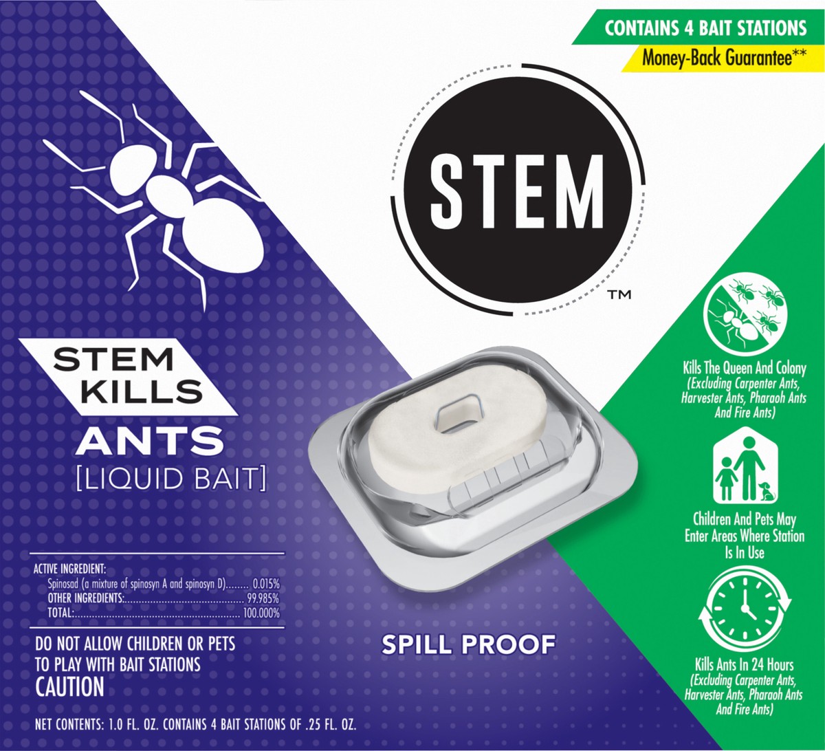 STEM Liquid Ant Bait is a spill-proof, no-mess solution to indoor ant pest control. This ant killer works in 24 hours by killing the queen and colony*. Place the ant bait traps along kitchen baseboard…