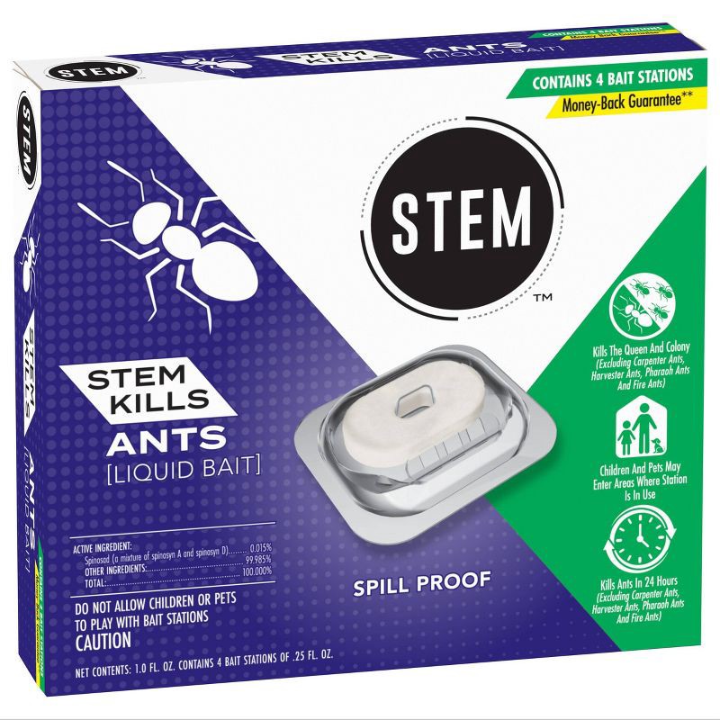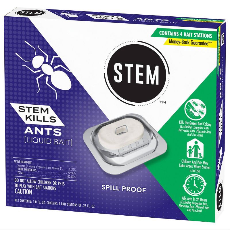 STEM Liquid Ant Bait is a spill-proof, no-mess solution to indoor ant pest control. This ant killer works in 24 hours by killing the queen and colony*. Place the ant bait traps along kitchen baseboard…