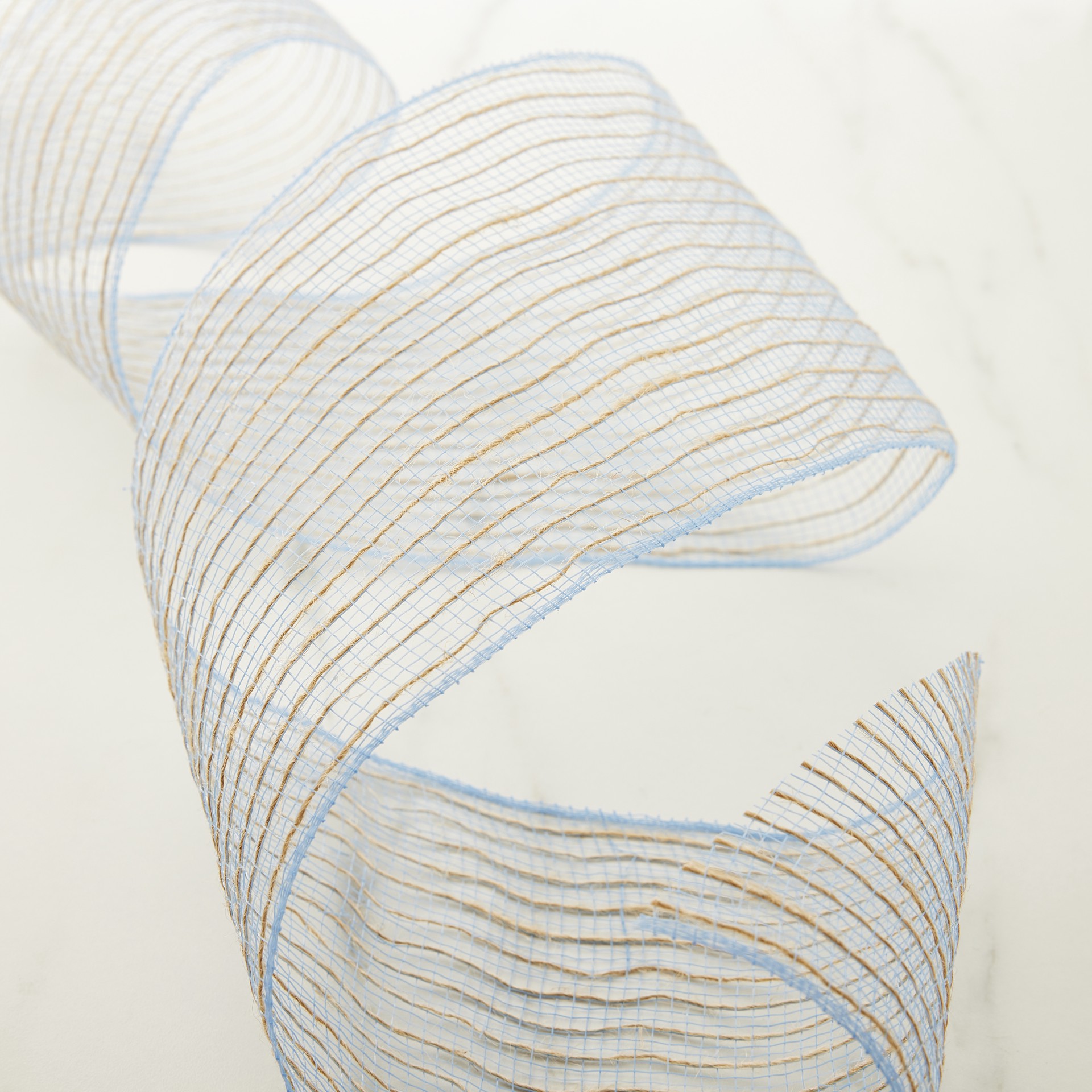 Enhance the rustic appeal of your decorative art projects using this mesh ribbon by Celebrate It. Blue with natural-colored jute strands. 5.5" x 24ft.. 65% olefin, 35% jute. 5.5" x 24ft. Mesh Jute Str…