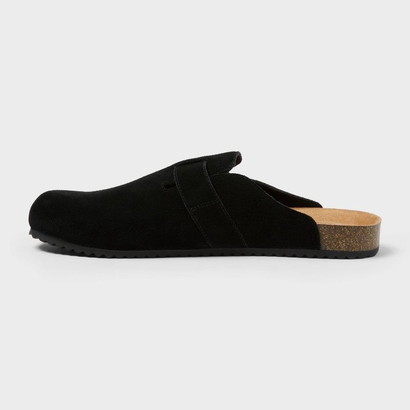 Men's Oswald Clogs - Goodfellow & Co™ Black 7: Slip-On Leather Flats, Contoured Footbed, Flexible Outsole