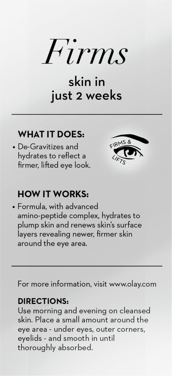 Don''t blink or you''ll miss how fast Olay Eyes Eye Lifting Serum for visibly lifted firm eyes smoothes and brightens skin around eyes. It instantly plumps the overall eye area with hydration and redu…