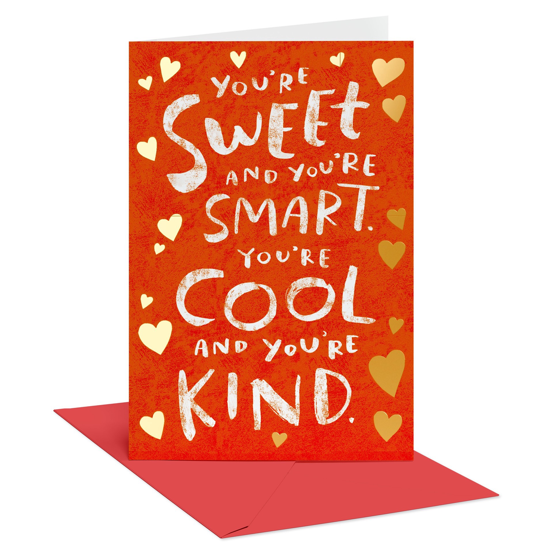 Make Valentine's Day extra fun for any young one with this charming and youthful greeting card. It boasts a striking and cheerful design that reflects just how cool and kind they are. The card opens t…