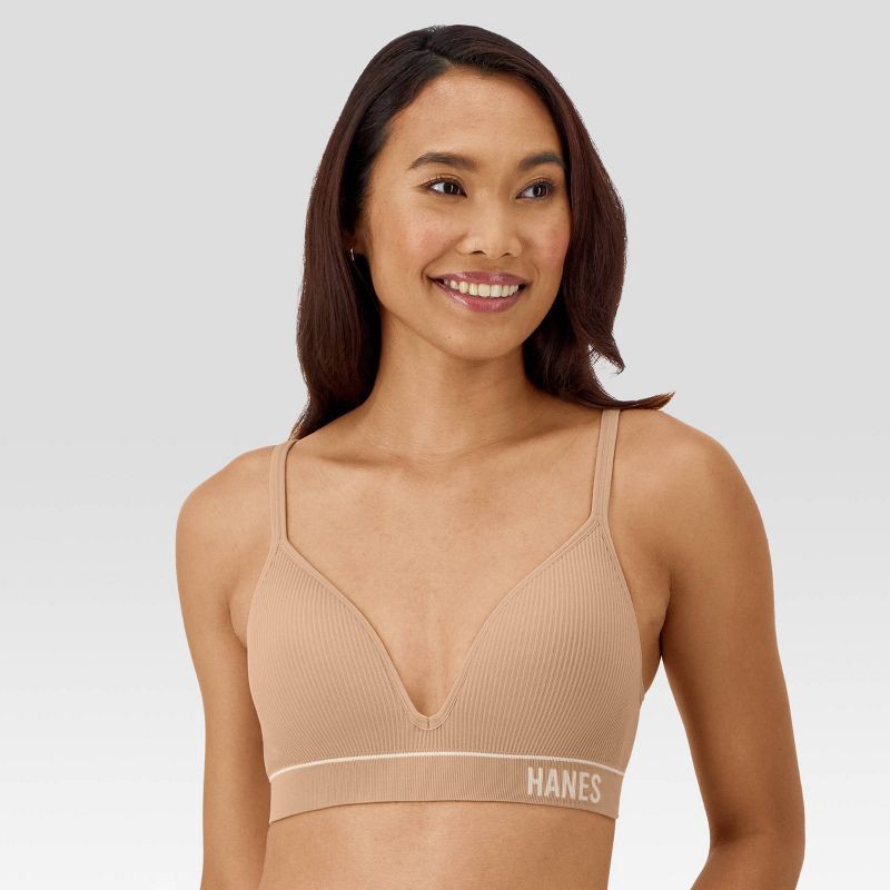 BASICS THAT ARE FAR FROM BASIC This Hanes Originals contour wire-free ribbed bralette is a soft and on-trend bra that is as cute as it is flattering! This comfortable go-to bra pairs perfectly with yo…