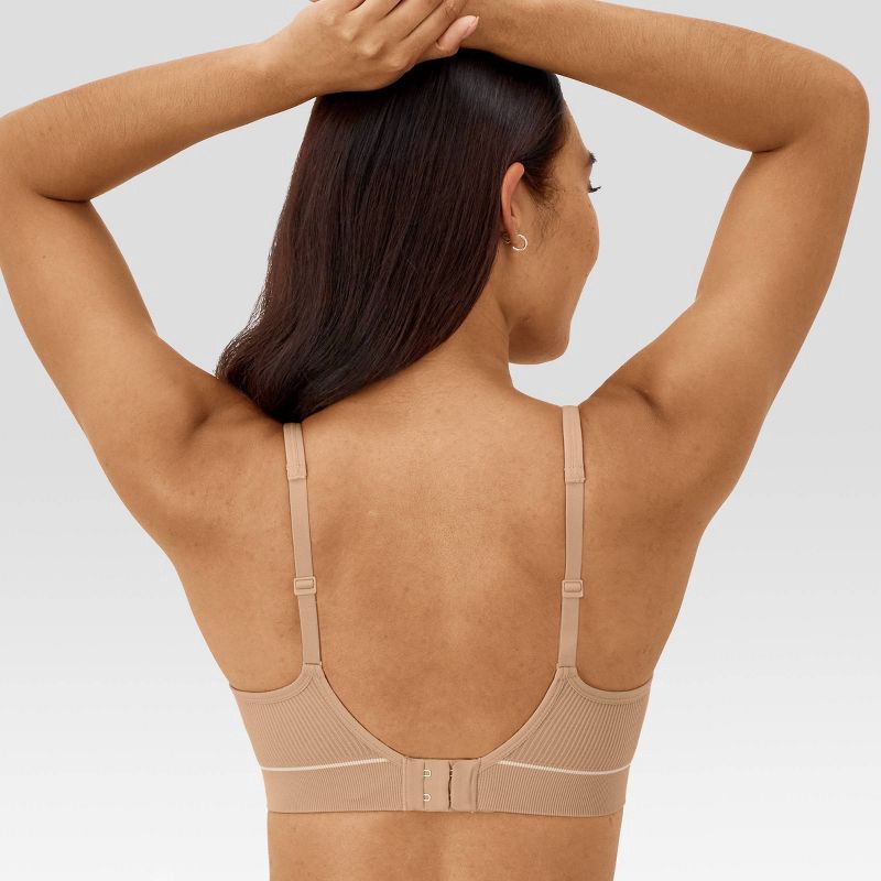 Hanes Originals Women's Ribbed Seamless Contour Bra MHB004 - Beige S: Lightly Lined, Adjustable Straps, Medium Coverage