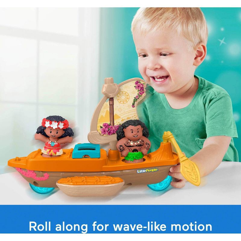 - Little People toy sailboat and figure set featuring Disney characters Moana and Maui!