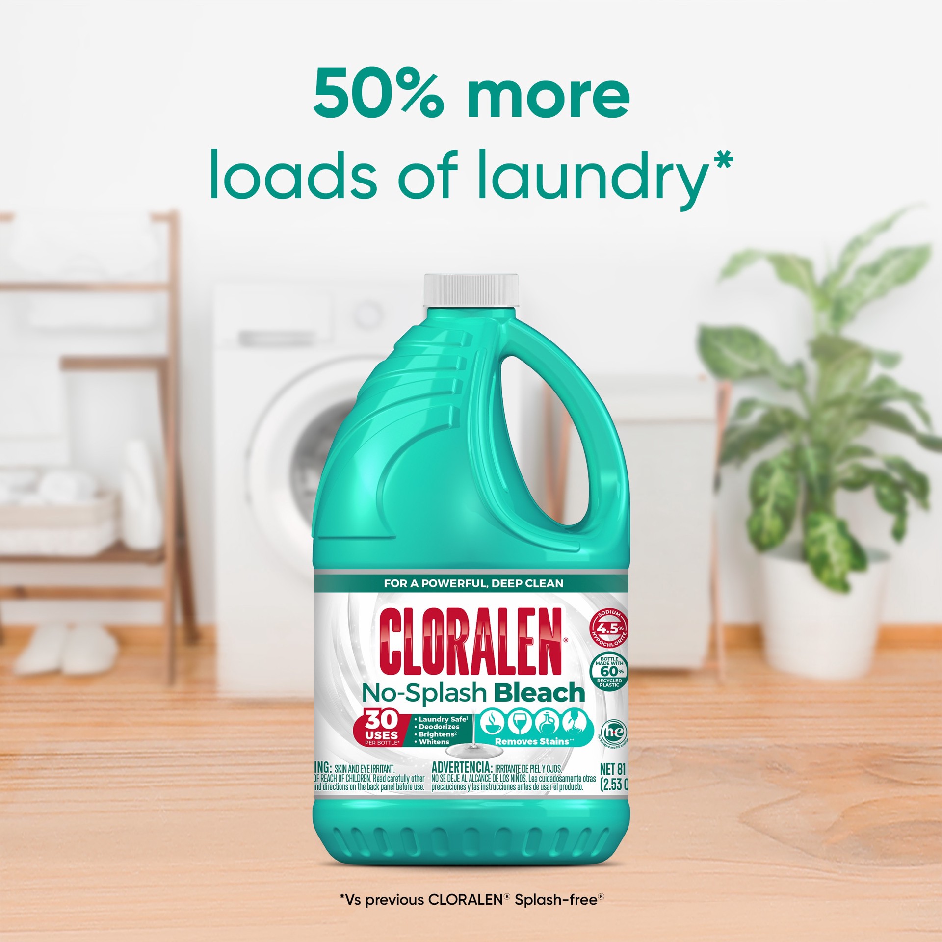 Concentrated cleaning to clean more and last longer* (compared to the previous Cloralen splash-free). No-splash means more control in your pour for fewer spills. Thick formula for better spot and stai…