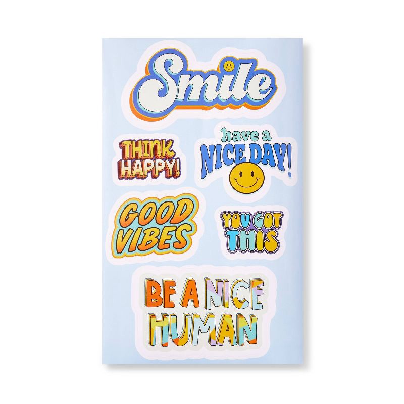 Give your child's decoration arsenal some uplifting vibes with this 6-Pack Positive Messages Vinyl Stickers from Mondo Llama. There are six vinyl stickers on a single sheet, each with a different chee…