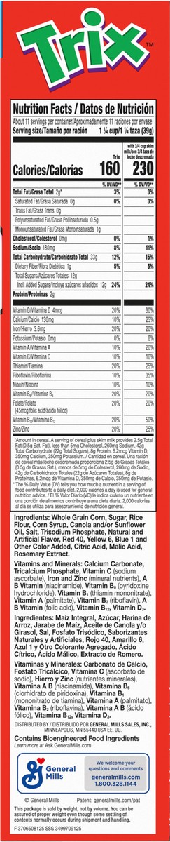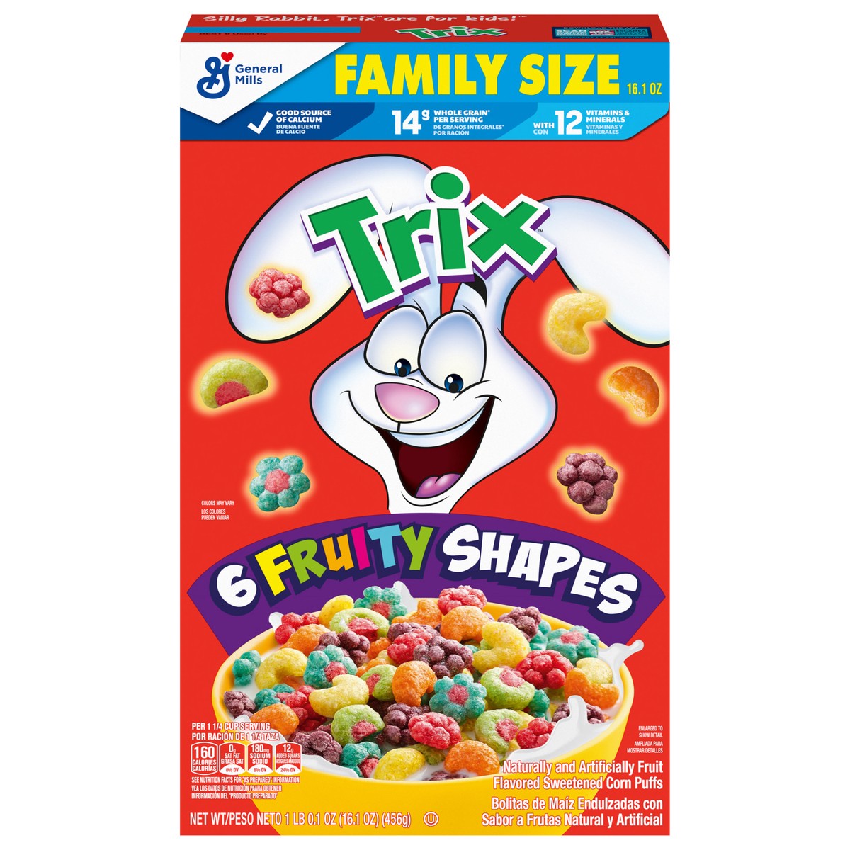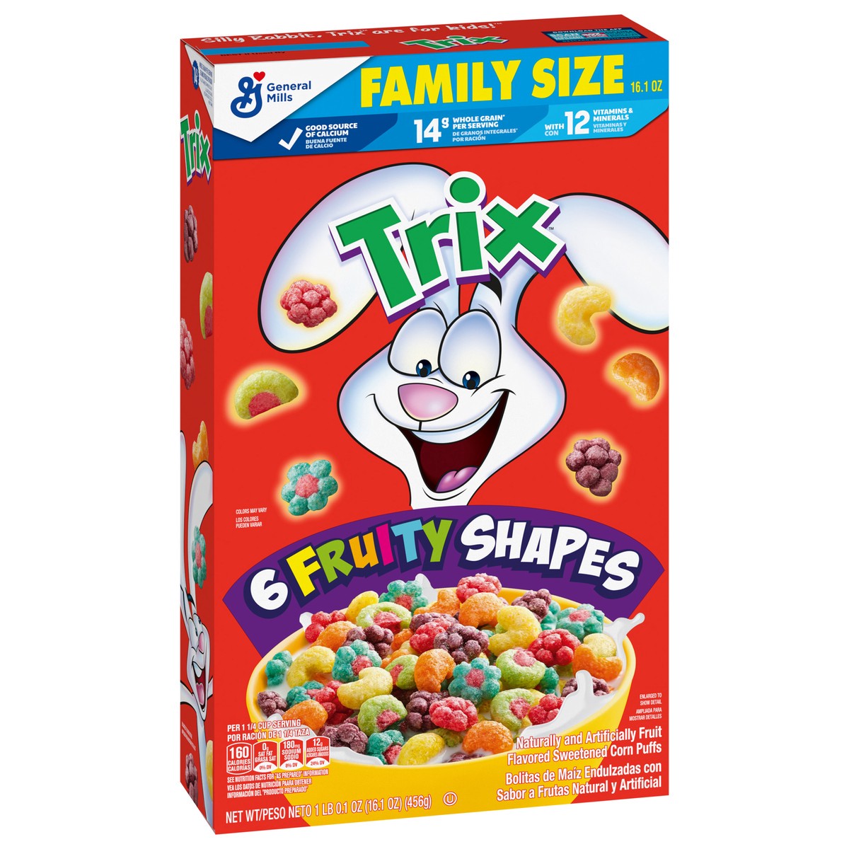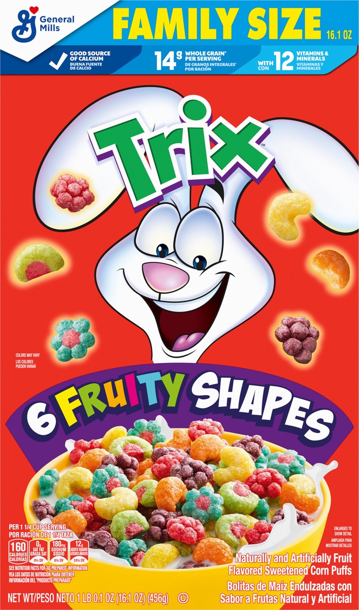 Trix Breakfast Cereal, 6 Fruity Shapes, Made with Whole Grain, Family Size, 16.1 oz