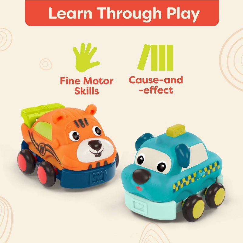 - Developmental Milestones: As kids play with these toy pull-back cars, they'll be using skills like hand-eye coordination and discovering cause-and-effect!
