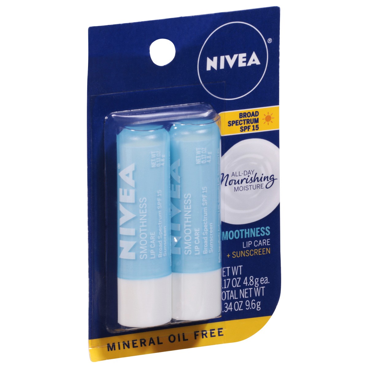Nivea Smoothness Lip Care SPF 15, Lip Balm SPF Stick, 0.17 oz Stick, Pack of 2